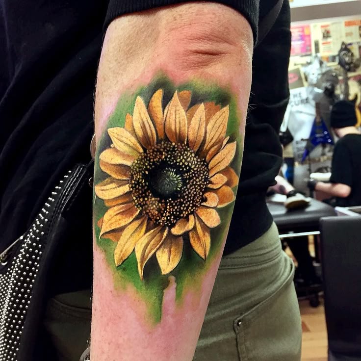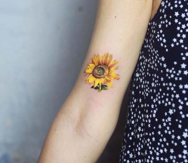 Одно из наиболее популярных мест для татуировки с подсолнухом — рука. Рисунок можно расположить на запястье, плече и предплечье. Так ваше личное маленькое Солнце всегда будет светить вам и окружающим людям.