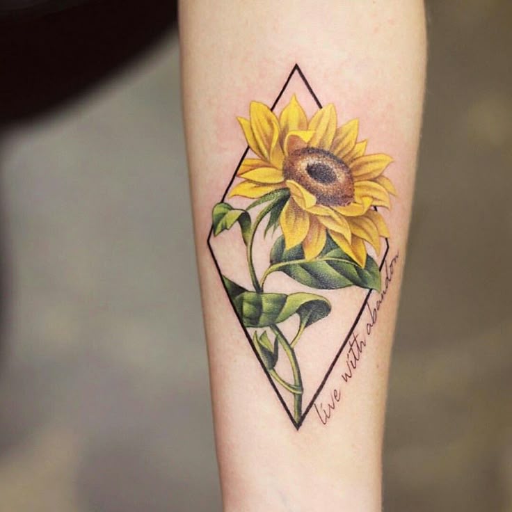 Подсолнух имеет множество значений в татуировках, и все они очень легкие и позитивные.