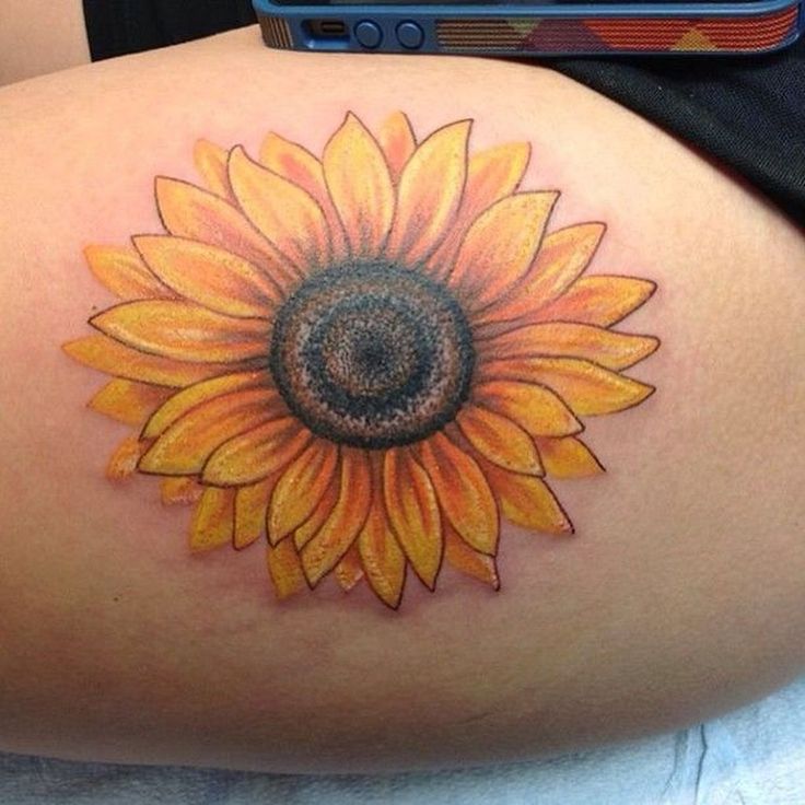 Этот яркий цветок всегда направлен к солнечному свету. Татуировка с подсолнухом подойдет жизнерадостным, позитивным людям, которые верят в лучшее.