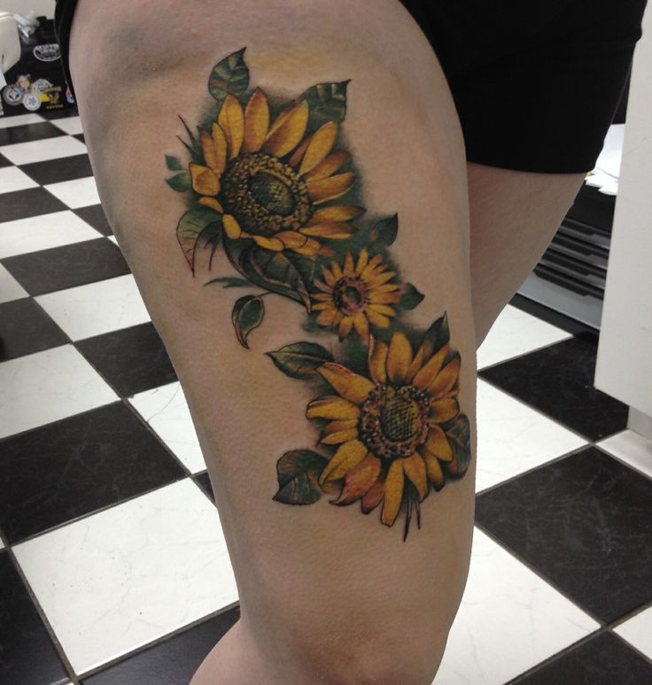 Подобные рисунки люди тоже набивают сбоку. Гораздо реже можно встретить подсолнухи на животе, шее, груди или ноге.