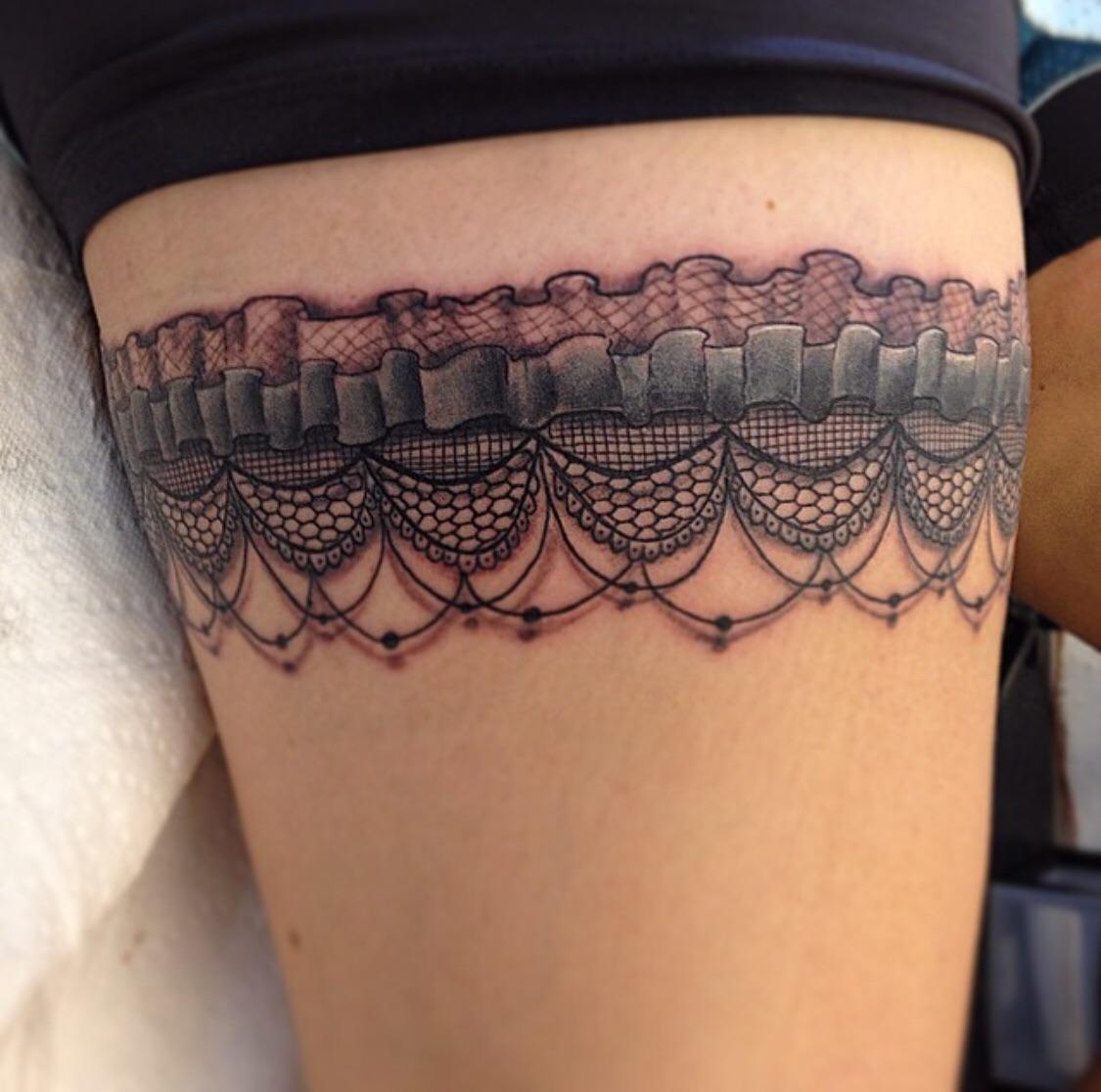 Тату с изображением ажурных подвязок станут прекрасным вариантом для уверенных в себе женщин, которые склонны к риску.