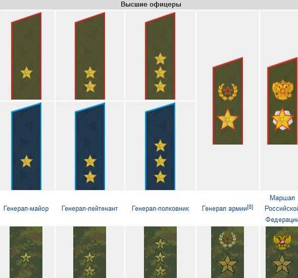 Воинские звания значения погон России таблица