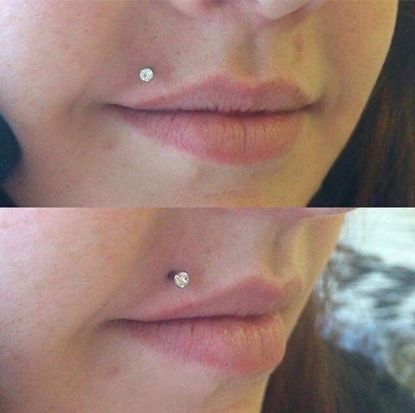 - Данный вид пирсинга губ осуществляется над верхней губой, с левой стороны.