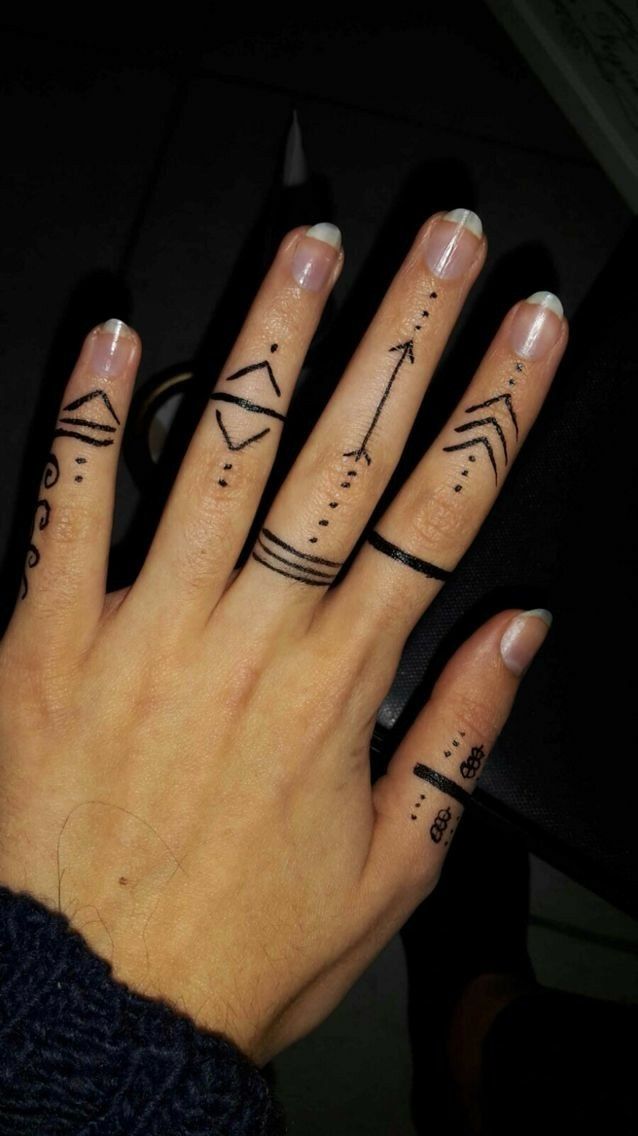 Татуировки на пальцах не обязательно должны быть красочными или сложными. Это простое расположение линий и форм прибило его!