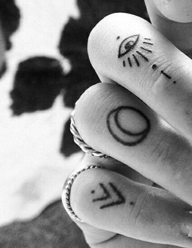 Попробуйте выделиться еще больше из толпы, нанеся татуировки между первым и вторым суставом, а не вторым и третьим. Меньшая площадь потребует более простого дизайна, но общий вид довольно потрясающий!