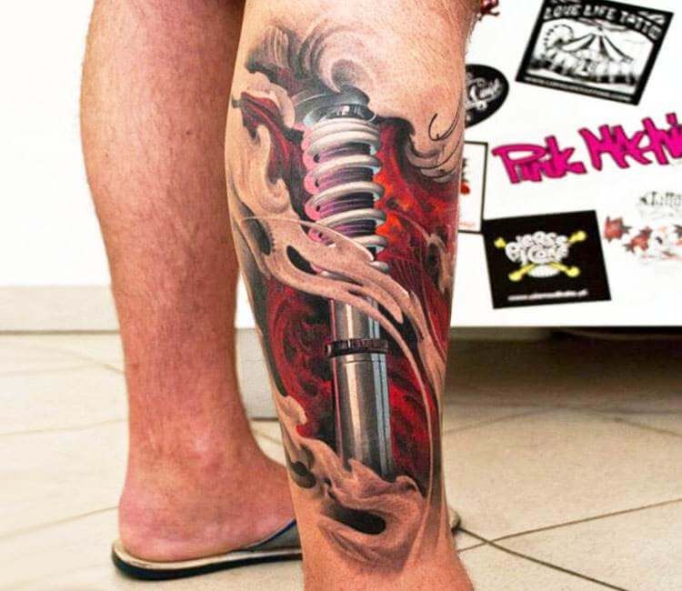 Типичное изображение биомеханики – тату амортизатор на ноге — RUXA