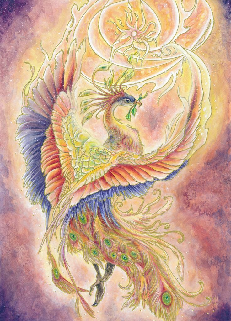 Феникс сжигает себя дотла, а потом восстает из пепла – обновленным, молодым и полным сил. Это прекрасная птица с золотым оперением, олицетворяющая солнце. «Царь-птица» феникс чем-то напоминает орла, окутанного пламенем.