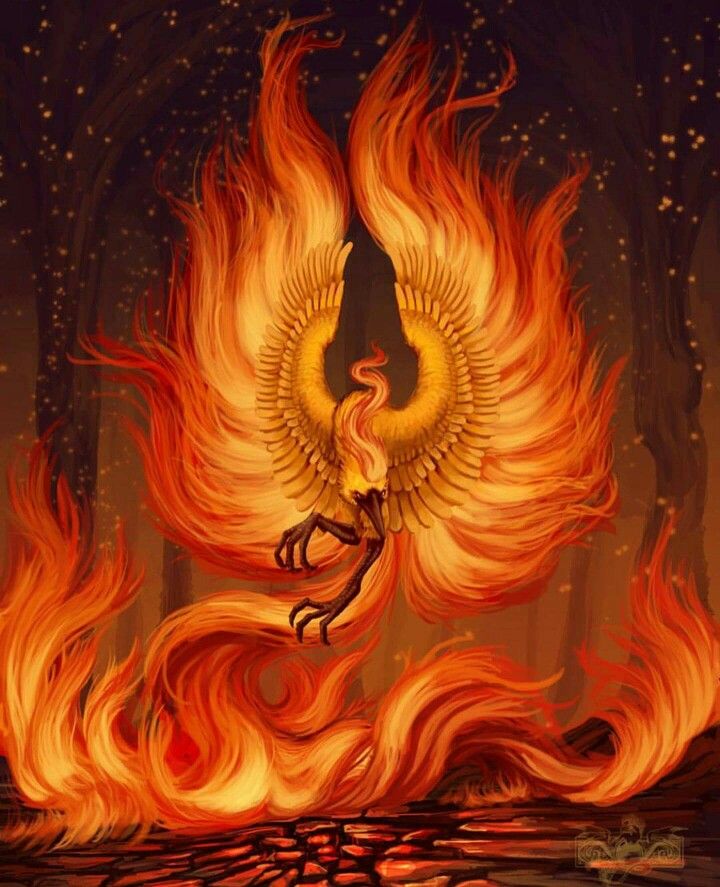 Феникс — мифическая священная птица, упоминаемая в персидской, греческой, египетской и китайской мифологии. Но раз в тысячу лет он расправляет крылья и поет над большой массой дров, и когда он в восторге от своей песни, то разжигает в клюве огонь, и когда оно горит в огне, из него выходит яйцо, который сразу загорается и горит. Еще один феникс рождается из его пепла.