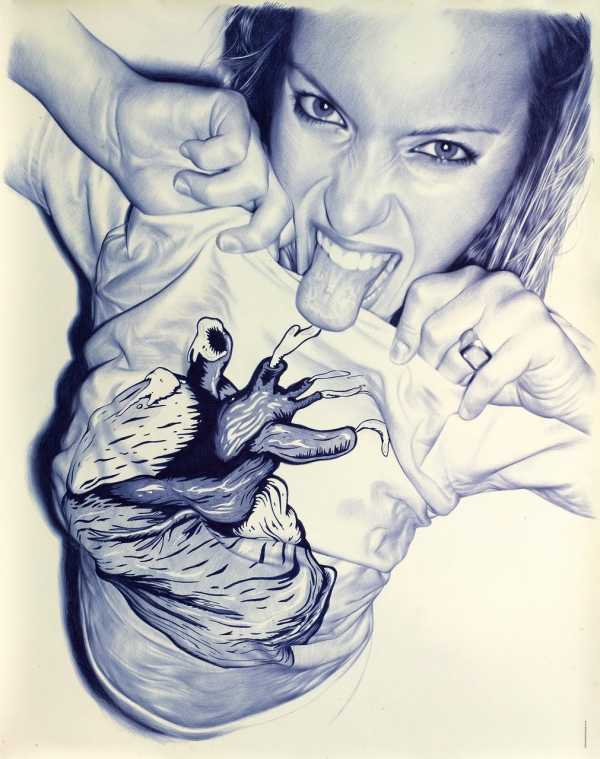 Итак, знакомьтесь. Первый художник, вернее художница — француженка Сара Естейе. Она еще и фотограф, и дизайнер и очень любит шокировать публику своими произведениями. В её блоге периодически появляются работы, способные ввести зрителя в культурный транс. Ей двадцать пять лет и вот ее рисунки, для которых Саре необходимы только лист бумаги и обычная шариковая ручка. Все не влезут ибо пространство не резиновое, а у меня в запасе еще парочка талантов. Тщательность и детализация каждой работы Сары очень впечатляют, в основном рисунки она создает для себя. Хотя некоторые уже принимали участие в выставках, а стиль художницы приглянулся создателям рекламных роликов для наручных часов Casio.