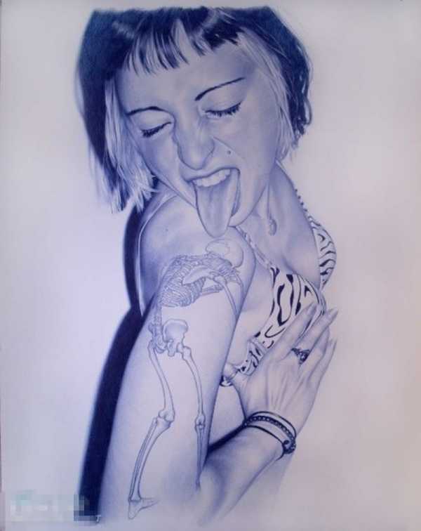 Портрет девушки, нарисованный шариковыми ручками » Nibler.ru