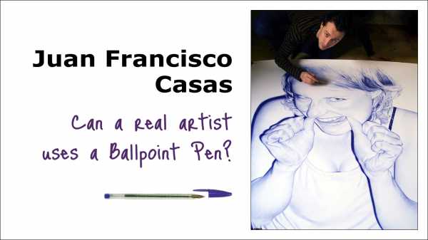 Уникальность работ испанского художника Хуана Франсиско Казаса состоит в том, что его фотореалистичные портреты созданы исключительно шариковыми ручками. Никаких дорогих красок или кисточек – только шариковая ручка Bic, мастерство, терпение и воображение.
