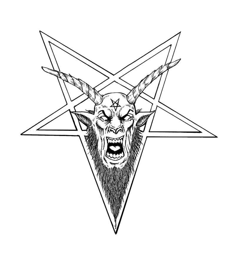 Перевернутая пиктограмма, образующая козлиную голову. Эту эмблему можно найти на обложке «Сатанинской Библии». Присутствует в символике таких метал-групп как Slayer, Venom и т.д. Это весьма серьезный знак, который практически всегда говорит о вовлечении в сатанизм.