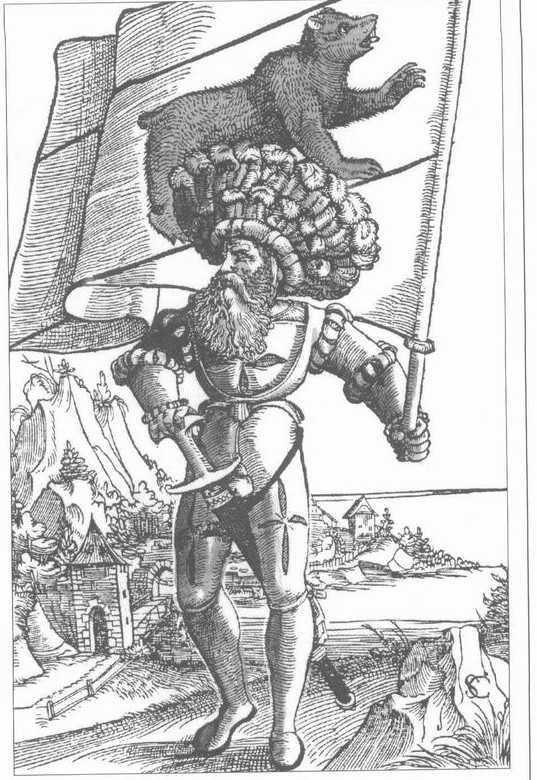 Длина кинжалов Гольбейна также обычно составляла до 400 мм. Но, к примеру, на Гравюре Урса Графа “Бернский знаменосец” мы видим такой кинжал размером примерно в метр, а то и больше.