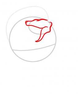 Начнем зарисовку головы змеи. Не упустите детали в форме ее головы и челюстей. Обратите внимание, что верхняя и нижняя челисти схожи по длине, хоть между ними и расстояние. Нижняя челюсть тонкая.