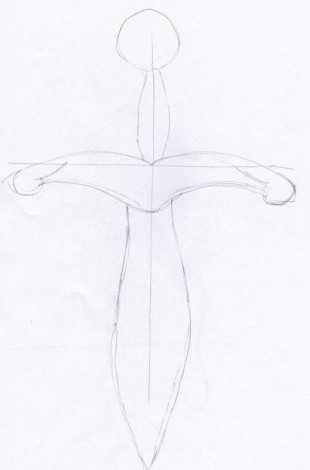 Шаг 2. Сделаем наброски основных элементов меча. Не старайтесь сразу рисовать всё детально. Главное сначала наметить основные линии.