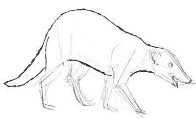 Ну вот, у нас готов контурный рисунок, желающие могут применять его как раскраску. Так как мы рисуем полосатого мангуста, то сейчас будем наводить полосы: