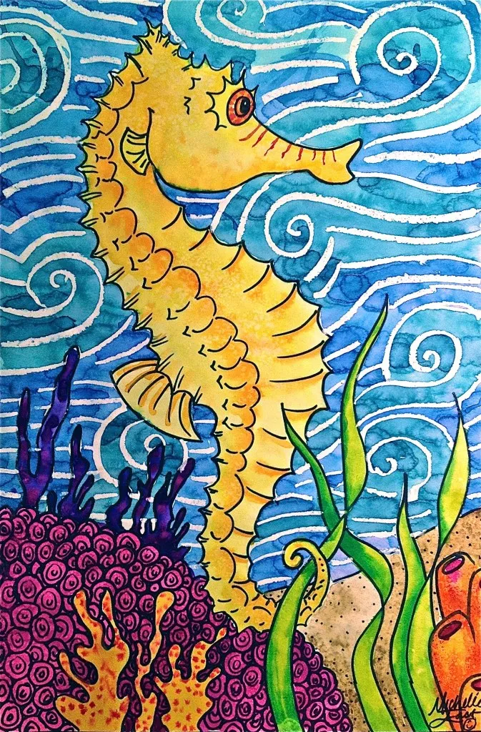 Нежный морской конек — прекрасное существо, которое дети хотели бы изобразить на холсте.