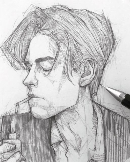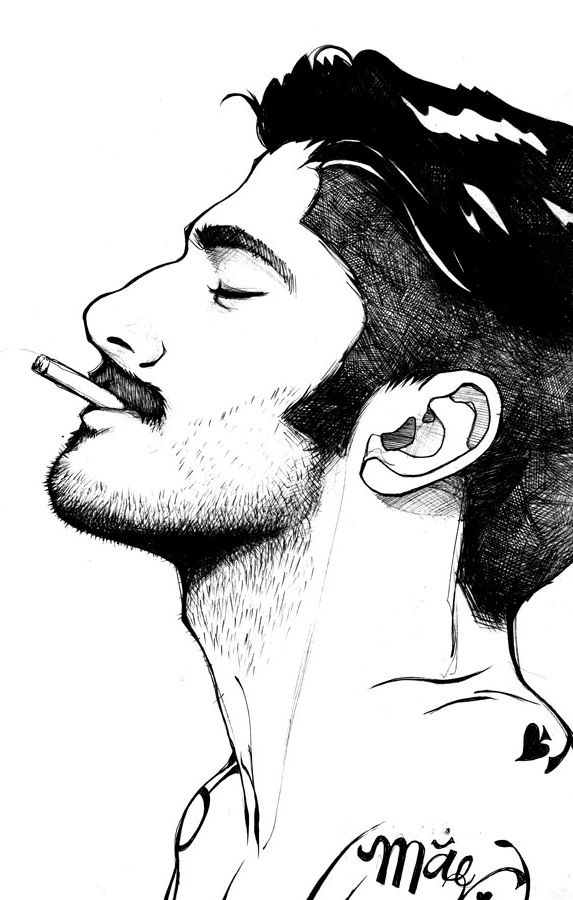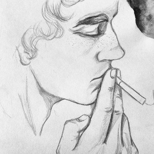 штриховой рисунок, курение, голова, мужчина, лицо, милый парень, artchi2000, сигарета, грустный, альтернатива