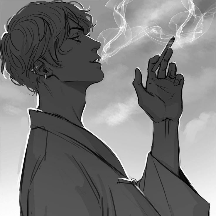 мужчина, курение, сигарета, дым, модель, мода, темный, современное искусство, graffmatt, рисунок, стритарт