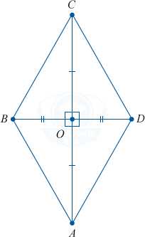 - ΠΠΈΠ°Π³ΠΎΠ½Π°Π»ΠΈ ΡΠΎΠΌΠ±Π° ΠΏΠ΅ΡΠ΅ΡΠ΅ΠΊΠ°ΡΡΡΡ ΠΏΠΎΠ΄ ΠΏΡΡΠΌΡΠΌ ΡΠ³Π»ΠΎΠΌ (AC β₯ BD) ΠΈ Π² ΡΠΎΡΠΊΠ΅ ΠΏΠ΅ΡΠ΅ΡΠ΅ΡΠ΅Π½ΠΈΡ Π΄Π΅Π»ΡΡΡΡ ΠΏΠΎΠΏΠΎΠ»Π°ΠΌ.