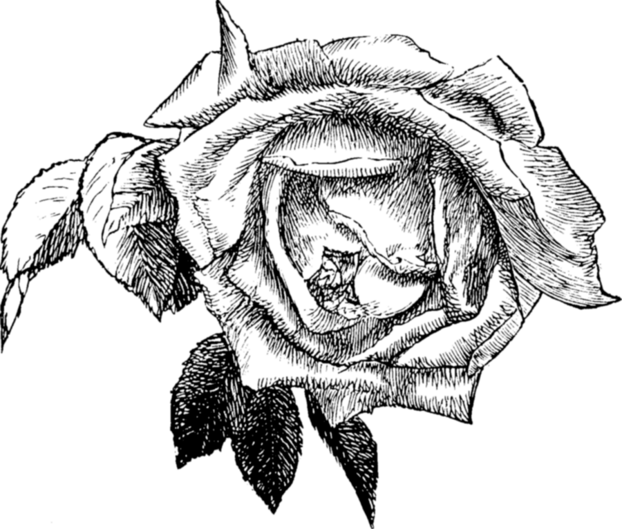 Черно-белый рисунок Роза, роза, белый, лист pngтеги