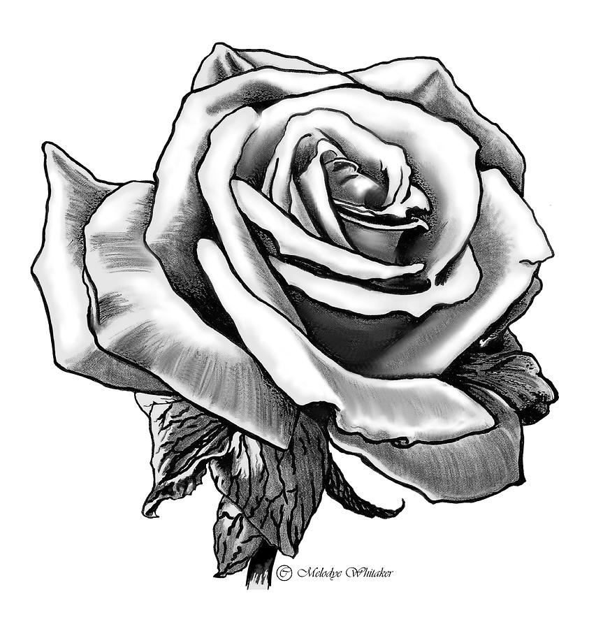 Простой черно-белый рисунок розы