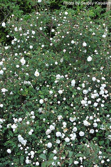 Однократно цветущая, может расти на бедных почвах, теневыносливая, подходит для живых изгородей, умеренно ароматная, ограниченно доступна в продаже. 200 х 150 см. Зона 5a.