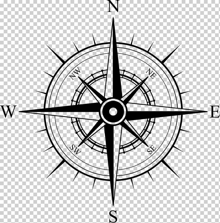 Роза ветров с обозначением север-юг Векторное изображение- лицензионные векторы