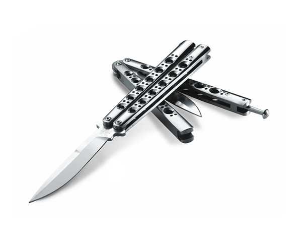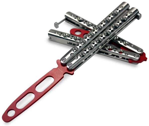 В интернете можно заказать бессмысленные и беспощадные “тренировочные инструменты”. Стоит отметить, что хорошие производители делают дырочки в клинке не просто так, а чтобы сохранить баланс веса. У тренировочных балисонгов клинок значительно толще, чем у настоящих. Дырочки нужны, чтобы такой нож весил столько же, сколько и не тренировочный. Вдоволь навертевшись игрушкой и взяв в руки аналогичную модель с острым краем, ощущения должны быть привычными. Это критически важно для трюков типа Spinning. В них мы много полагаемся на импульс, крутящий момент и не так надёжно удерживаем нож пальцами, как обычно происходит в Twirling.
