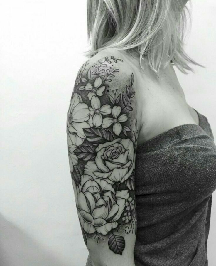 Допустим, вы просто не можете решиться на одну татуировку, но восхищаетесь другими и хотите превратить их в фантастическое произведение боди-арта. Превратите свой рукав в красивый холст и сделайте татуировку в виде эфирного черно-серого цветка.Всю вашу руку будет украшать изящная татуировка в виде цветка. Тени и контрасты будут лучшей иллюстрацией и придадут этой идеальной тонкой индивидуальности.
