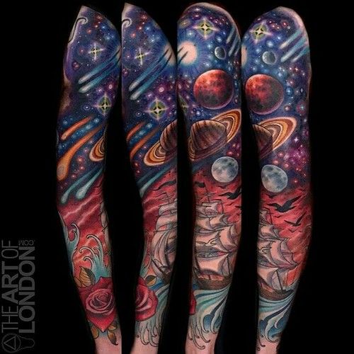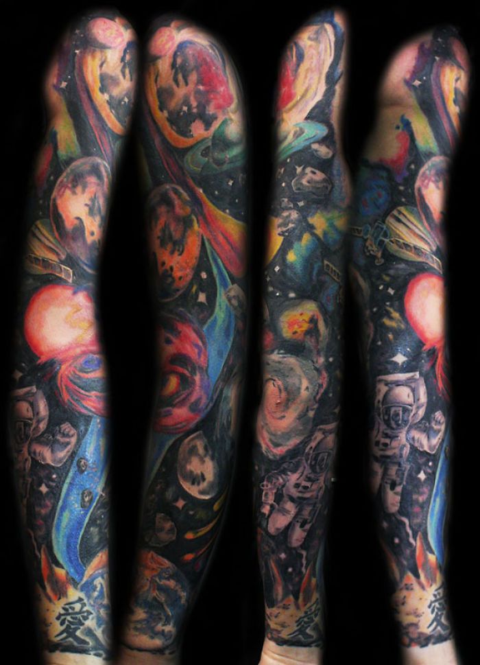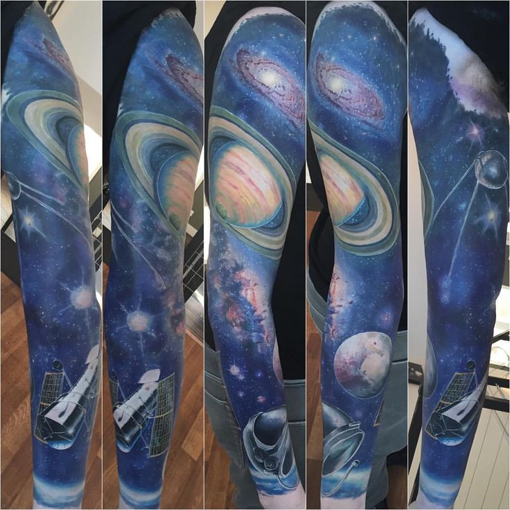 Реалистичные изображения галактик, миниатюрные рисунки планет, портреты космонавтов и изображения НЛО — не раз становились сюжетами для татуировок. Бескрайние просторы вселенной привлекают людей своими тайнами и открытиями. Детская мечта, стать космонавтом, также, воплощается в ярких татуировках.