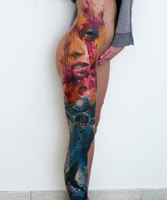 В любом стиле татуировки можно успешно воплотить космическую тему в жизнь.