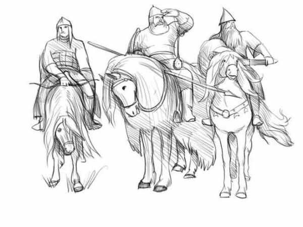 Рисунок богатырей простым карандашом.