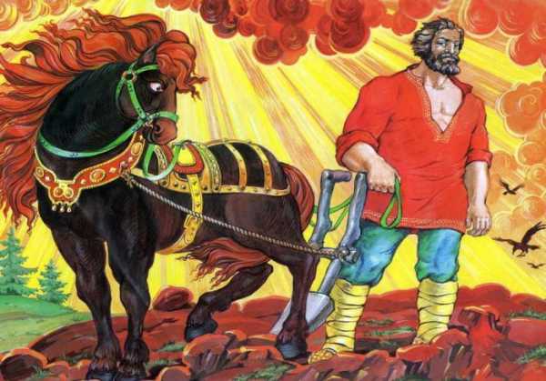 Отъехав, Микула вспомнил, что позабыл соху в земле. Два раза посылал Вольга дружинников ту соху вытянуть, на третий раз сам с дружиной всей не одолел. Микула же одной рукой выдернул ту соху.