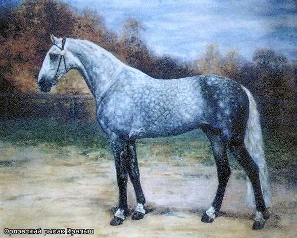 У лошади Добрыни большие глаза, большой лоб, что говорит о незаурядном уме. Но готова ли эта лошадь к предстоящим России в 20-м веке испытаниям? К сожалению – нет. Настоящий орловский рысак – лошадь «и в подводу, и под воеводу» – во времена Васнецова выглядел вот так: