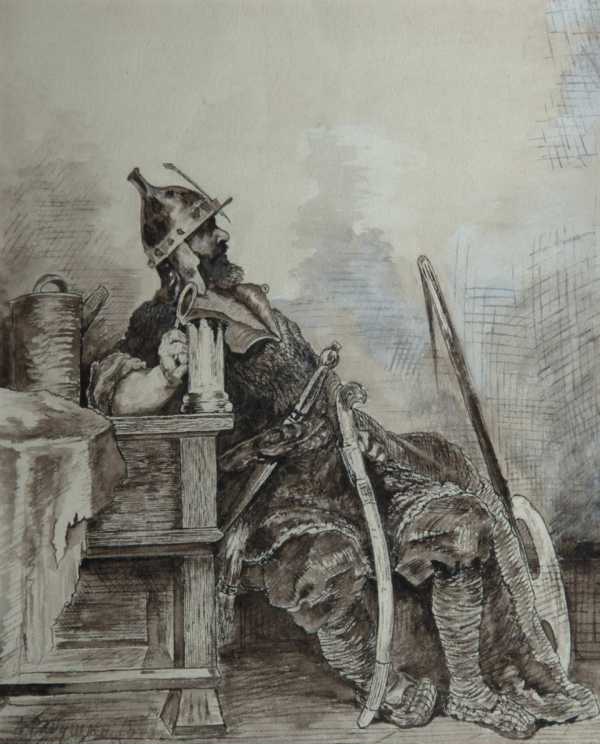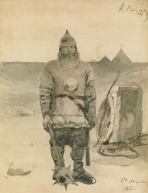 Илья Муромец. А. П. Рябушкин. Эскиз к серии рисунков «Русские былинные богатыри»