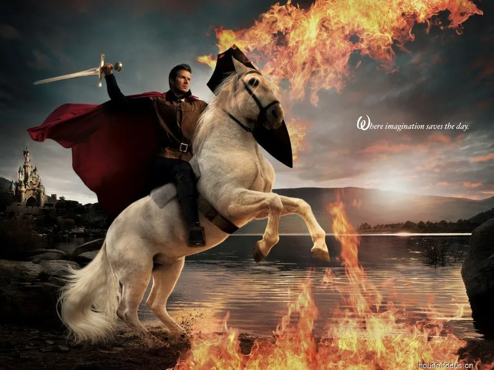 Средневековые рыцари на лошадях, 3d визуализация, квадратное изображениеPREMIUM