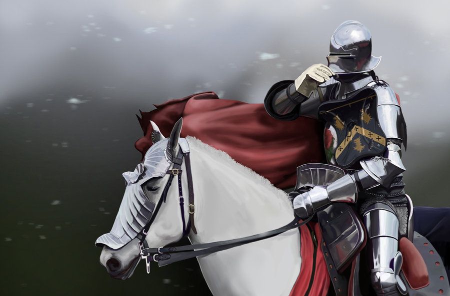 Рыцарь верхом на лошади, бегущей по лугу, стиль цифрового искусства, иллюстрационная живописьPREMIUM