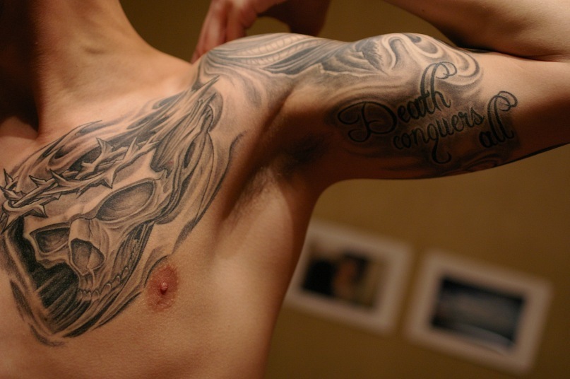 Мужчины чаще всего выбирают большие и яркие эскизы для нанесения на грудь. На этот участок тела можно нанести практически любой рисунок.