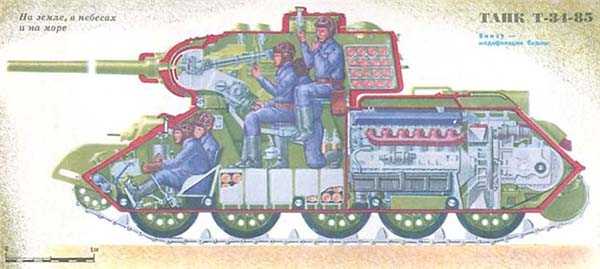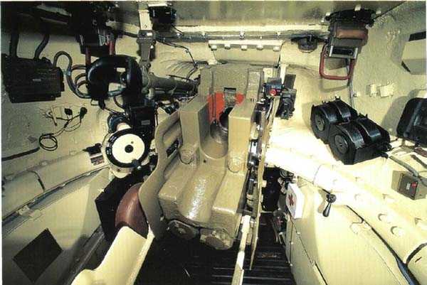 В более новых моделях Т 34 в башне слева от пушки находится место для наводчика. Получая приказ от командира, он наводит пушку и ведет огонь при помощи электроспуска. В кабине находится перископический прицел ТШ 16 с 4-кратным увеличением, служащий для наблюдения за боем. Пушка наводится на противника при помощи механизма поворота башни.