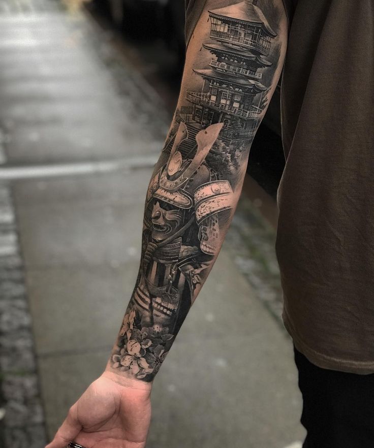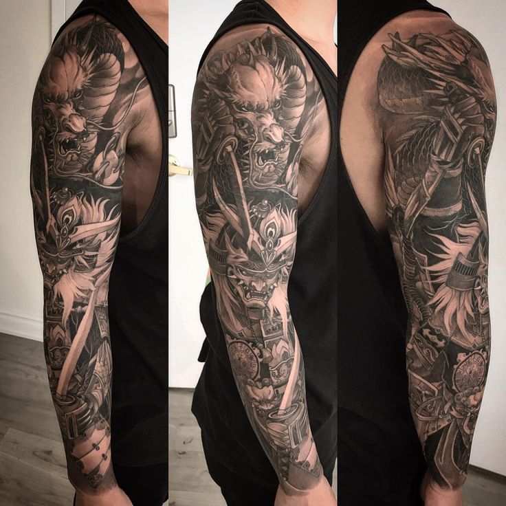 Татуировка на весь рукав – самурай и волк – вдохновлены играми | Конкурс татуировки