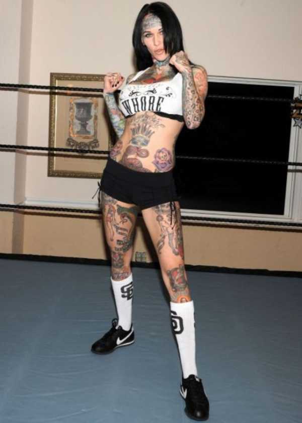 В книге рекордов Гиннесса она фигурирует как женщина с самым большим количеством рисунков на теле.