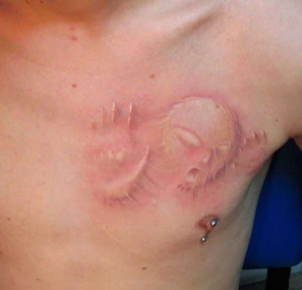 Некоторые делают на теле портрет любимого человека, другие вытатуируют китайские иероглифы, но есть и такие, кто предпочитает рисунки пострашнее. Вряд ли это является спонтанным решением, наверняка здесь скрыты более глубокие мотивы, но в любом случае, если вы когда-нибудь задумывали сделать татуировку, вполне возможно, увидев этот кошмар, вы передумаете.