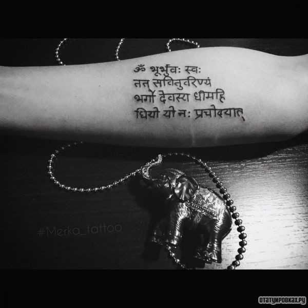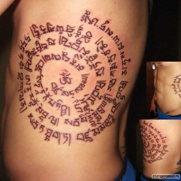 Значение тату с изображением мантры: оберег, защита, очищение, привлечение удачи, богатство, здоровье, просветление, познание истины.