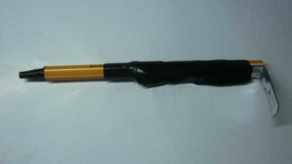 Делается это следующим образом: первым делом соединяется Г-образная скоба и ручка с помощью изоленты. Плотно примотайте скобу к ручке несколькими слоями изоленты таким образом, чтобы изгиб скобы и верхний конец ручки были на одном уровне.