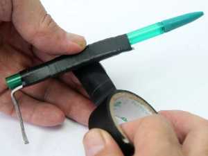 Далее берем корпус от карандаша и приматываем изолентой нашу ручку, мотаем крепко и надежно.