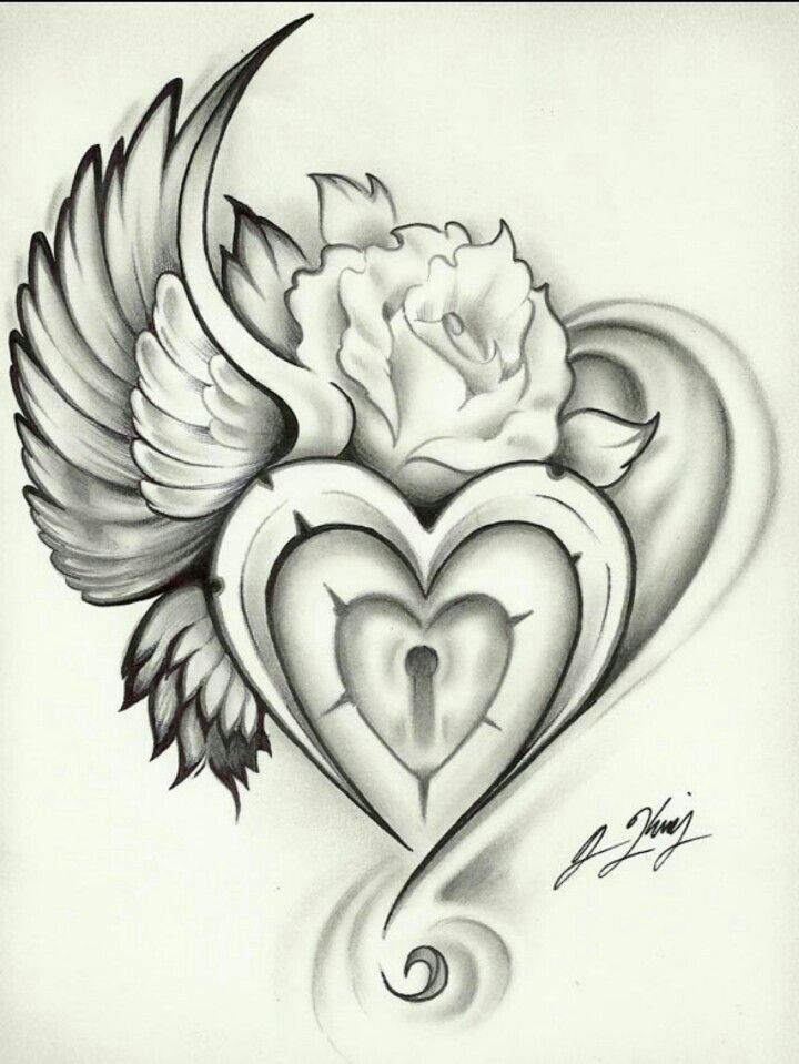 Сердце с крыльямиЭтот дизайн будет иметь простое сердце, к которому будут добавлены крылья с обеих сторон. Дизайн выглядит очень круто на затылке, шее, запястье, плече и бедре.