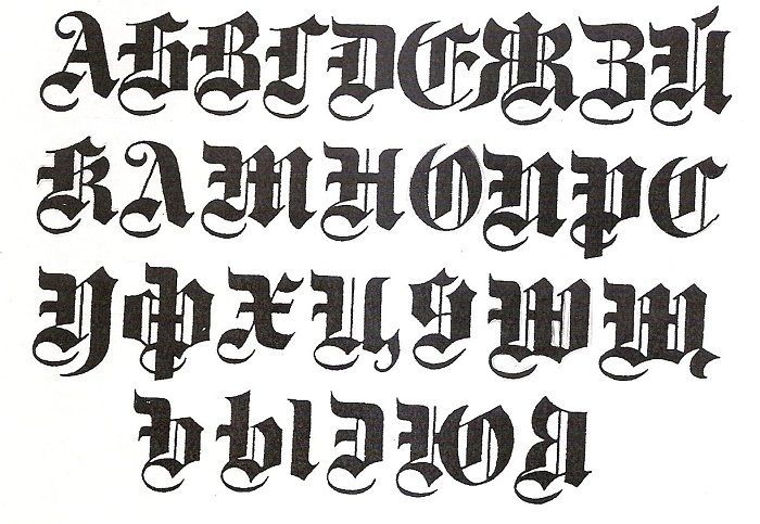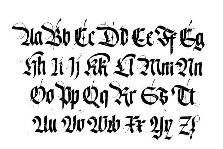 Широко распространенные готичные шрифты для тату характеризуются резкостью и прямотой линий, четкими углами, часто заостренными концами букв.