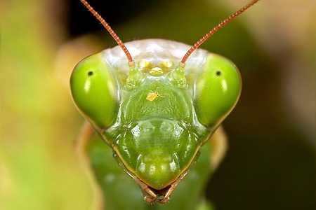 Богомол, пожалуй, единственный из живых существ, способный без труда повернуть свою, треугольной формы, голову на все 360 градусов. Благодаря столь полезному умению он может увидеть приближающегося сзади врага. А еще у него имеется только одно ухо, но, несмотря на это, просто отличный слух.