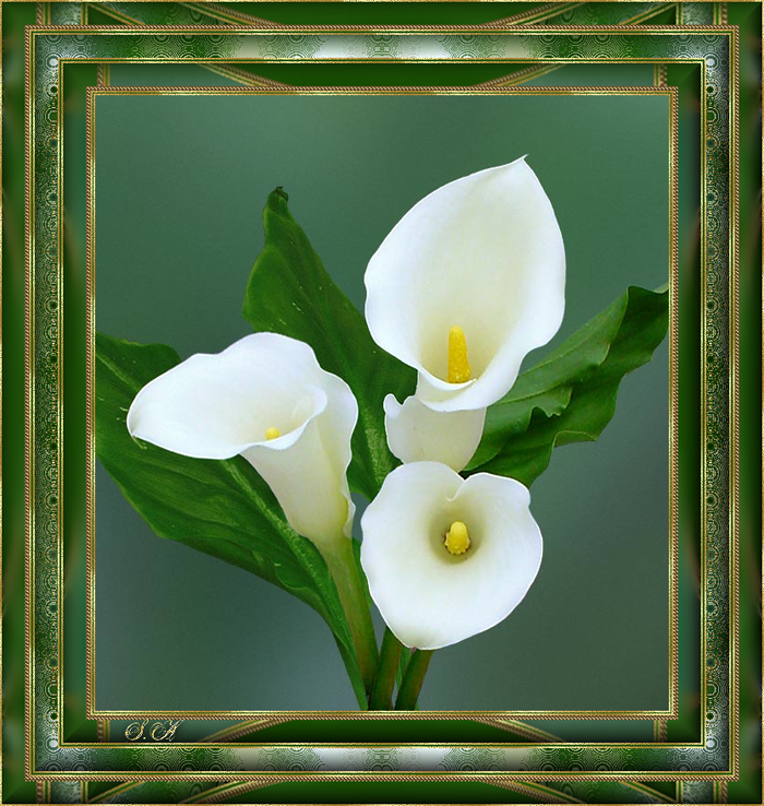 - Магическими свойствами наделены не только живые каллы, но и их изображение. Чтобы защитить себя от ссор, болезней, зависти и злобы недоброжелателей, достаточно надеть одежду с изображением этих цветов или повесить картину или фотографию с ними при входе в дом.